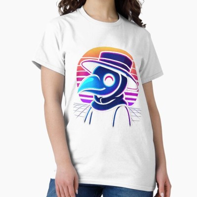 Neon Synthwave Plague Doctor – Retro 80’s Vaporwave Aesthetic Oversized T-Shirt